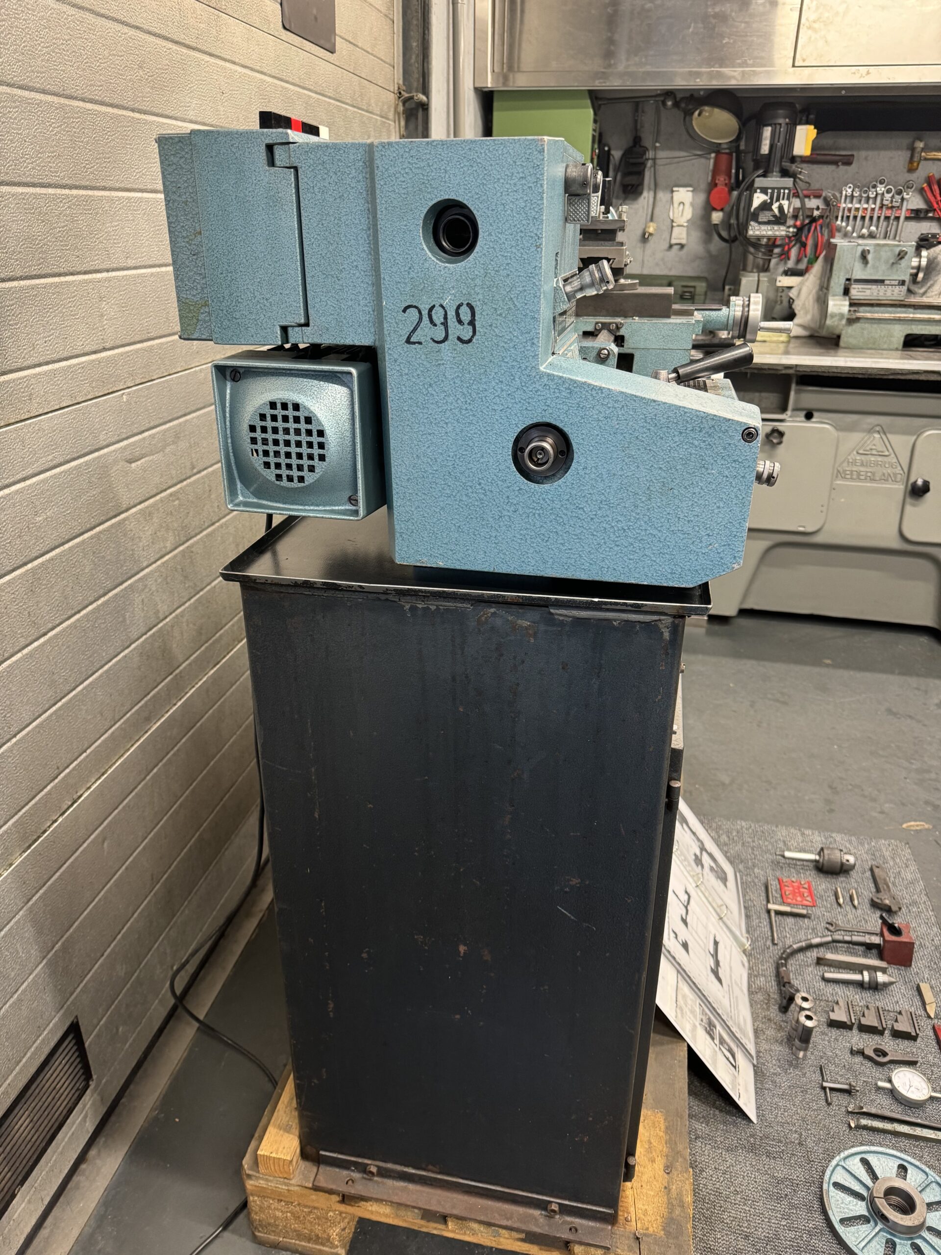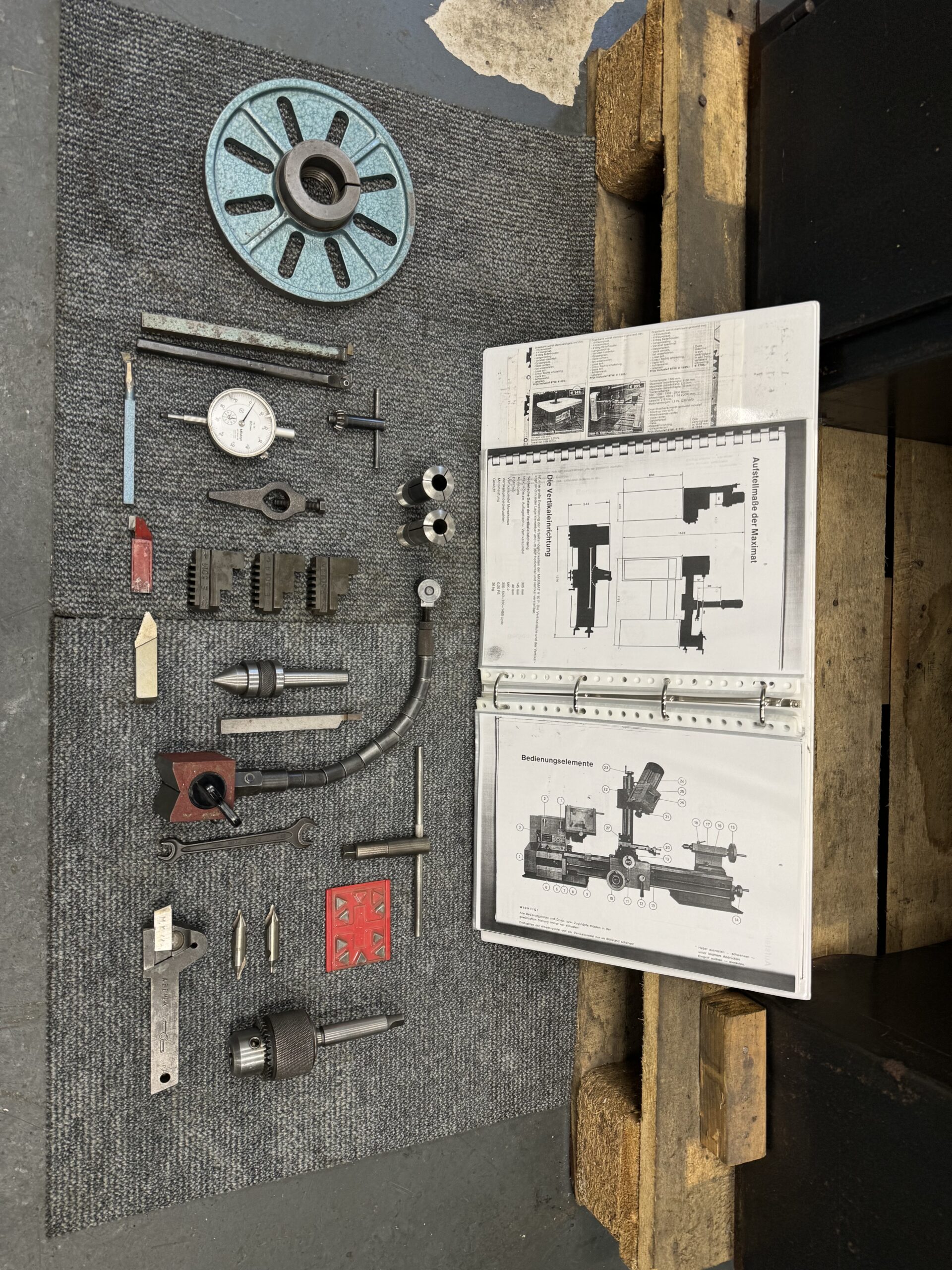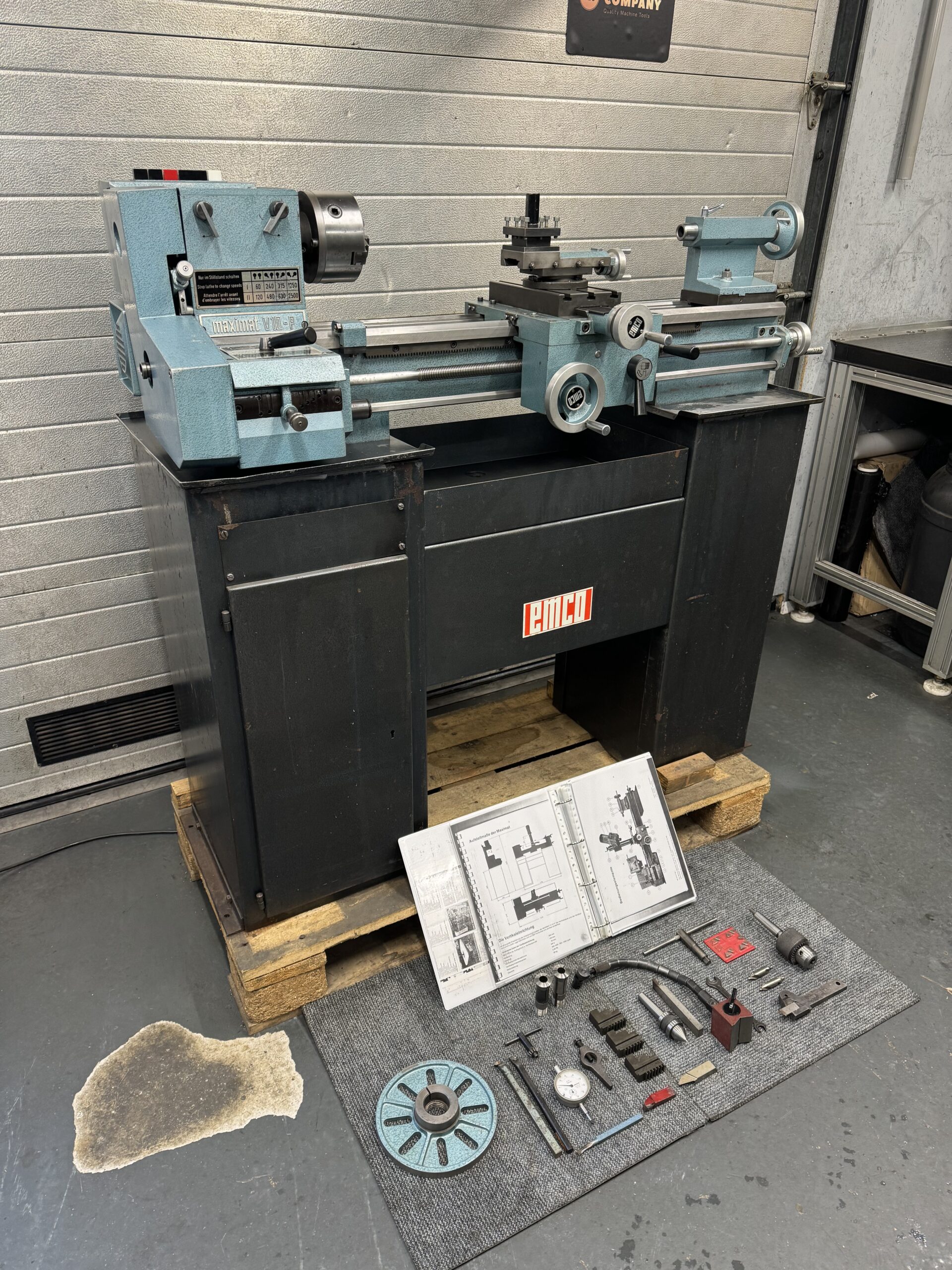 All accessories as shown on picture’s in front of the lathe are included.